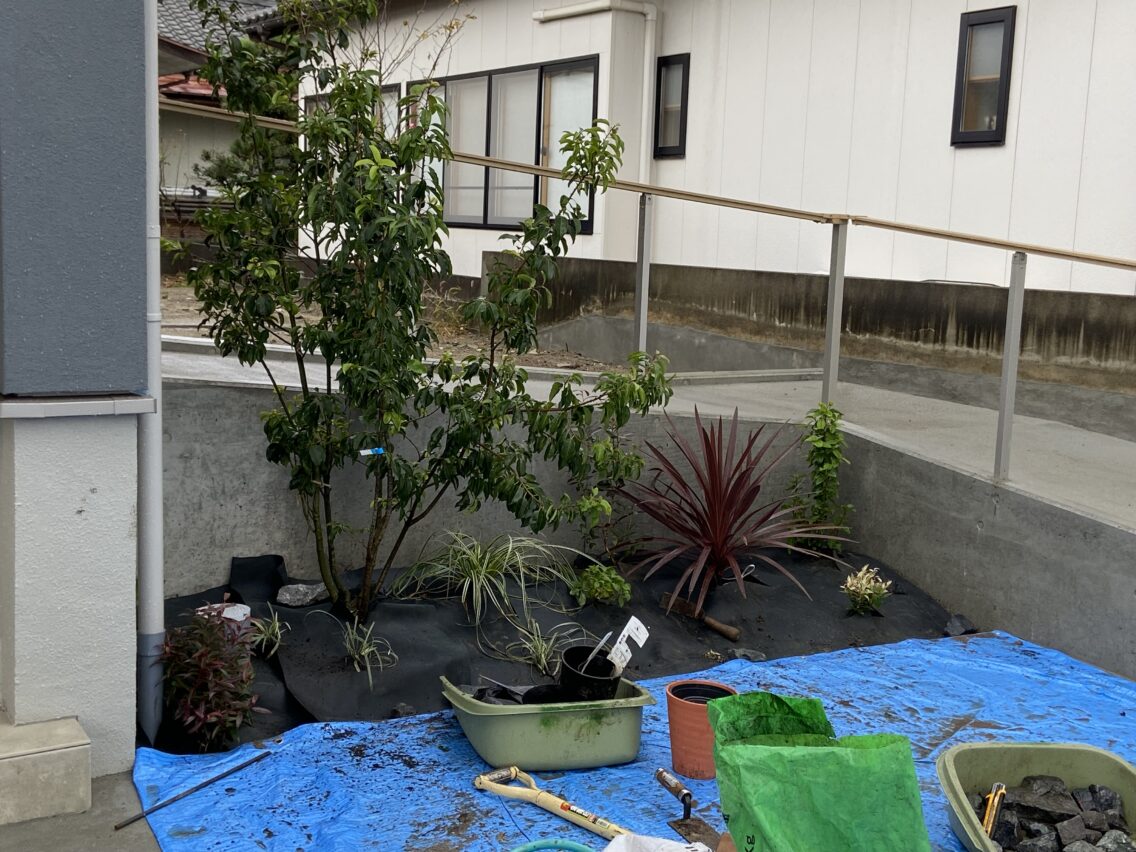 本日植栽工事をさせていただいたお引渡し直前の現場です。