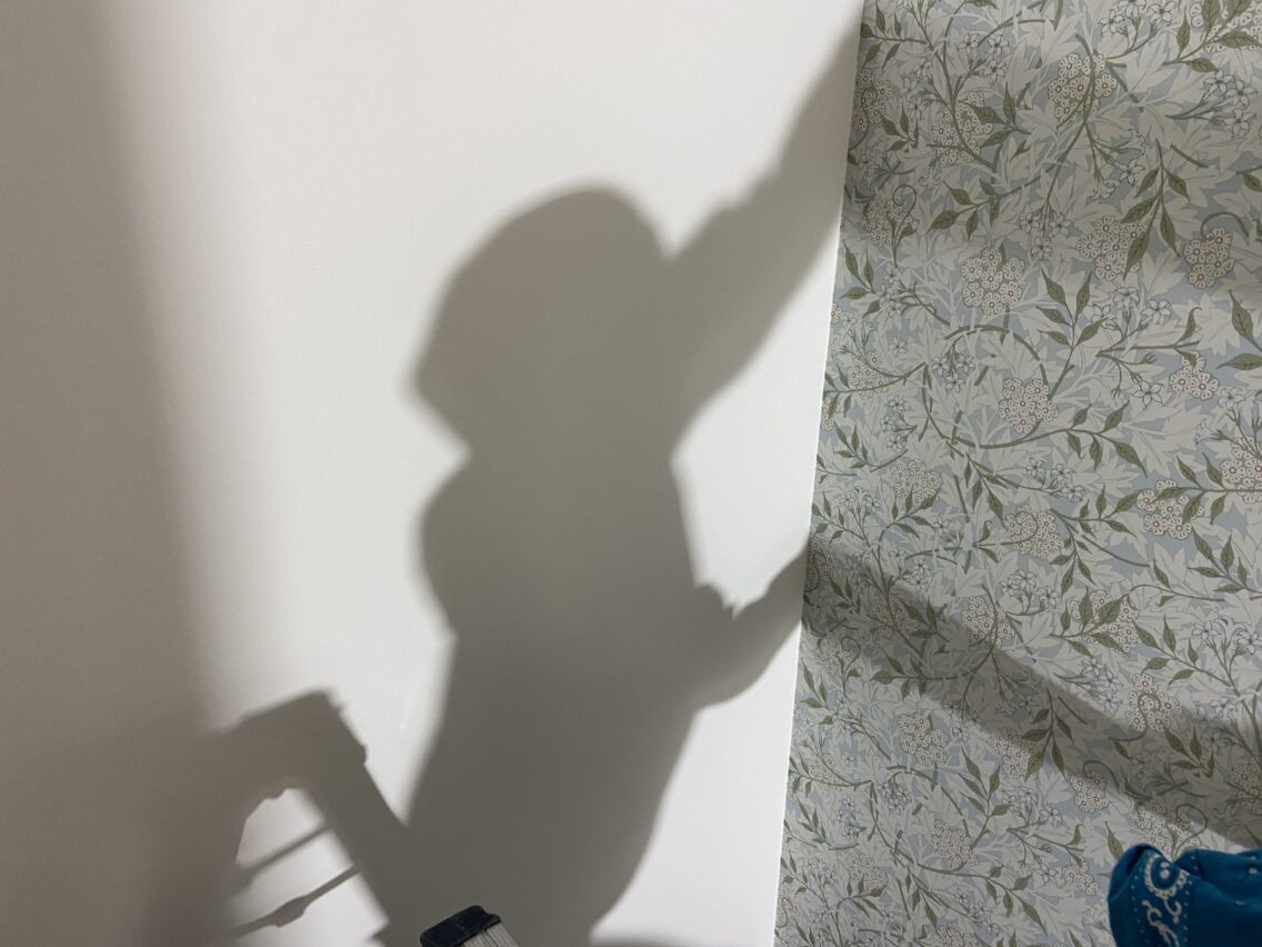 (職人さんがクロスを貼ってる状況シャドーです)